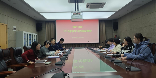 2026年1月22日下午,资产公司在基地二楼路演大厅组织召开2025年度例行审计内部反馈会,公司相关部门负责人参会,会议由董事长吴小川主持。会上,吴小川通报了本次例行审计中发现的问题,要求全员要树立审